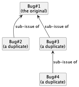 - For each group of duplicates, all duplicates should be marked as sub-issues of one original i.e., no multiple levels of sub-issues.