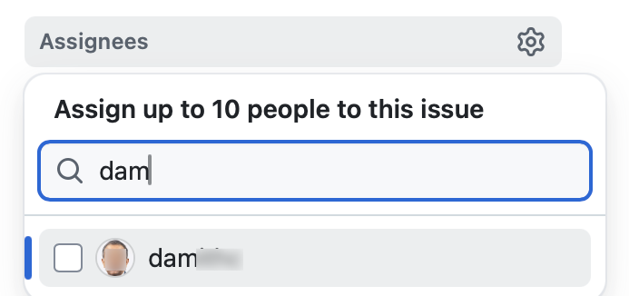 - You may need to type the GitHub username of a member for it to appear in the assignee list.