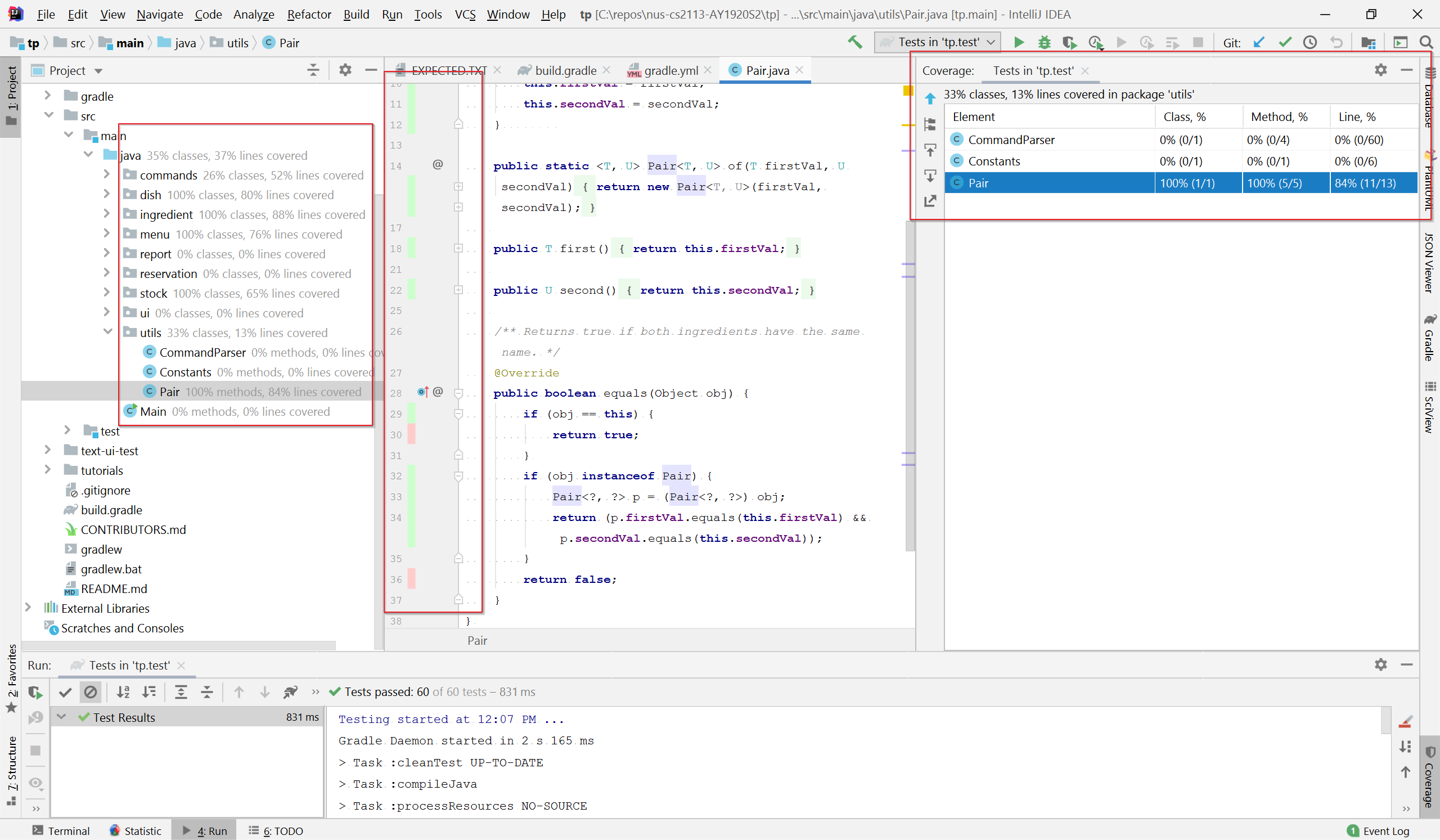 before the tutorial, or in the first 10 minutes Measure test coverage in your own iP using your IDE. Take a screenshot showing test coverage details such as lines covered, lines not covered, percentage of coverage for different files etc.