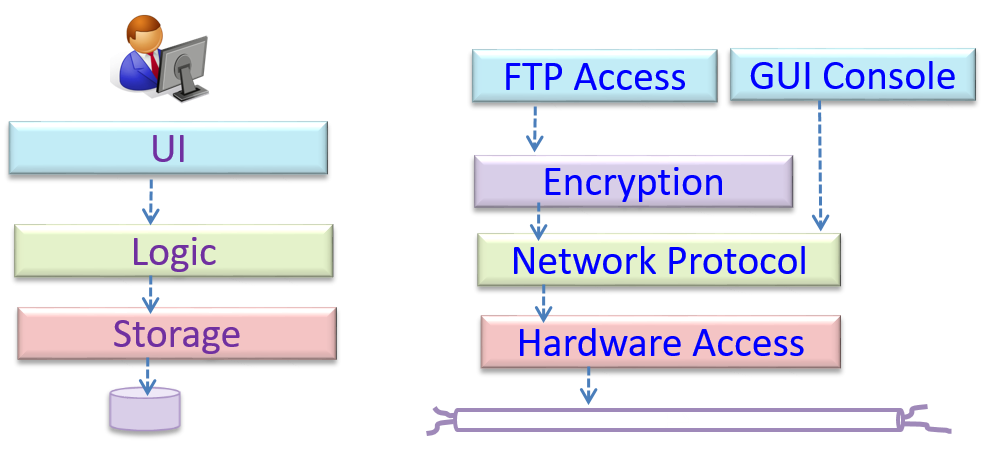 An application can use a client-server architecture where the server component comprises several layers, i.e., it uses the n-tier architecture.
