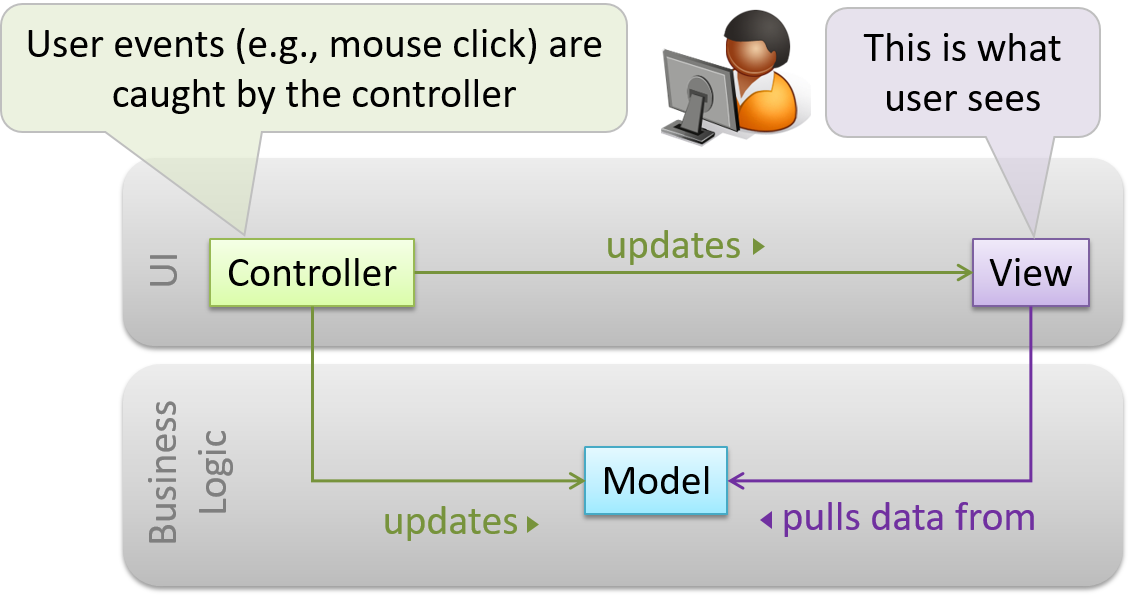 Note that in a simple UI where there’s only one view, Controller and View can be combined as one class.