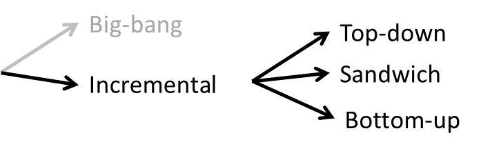 Sandwich integration: a mix of the top-down and bottom-up approaches. The idea is to do both top-down and bottom-up so as to 'meet' in the middle.