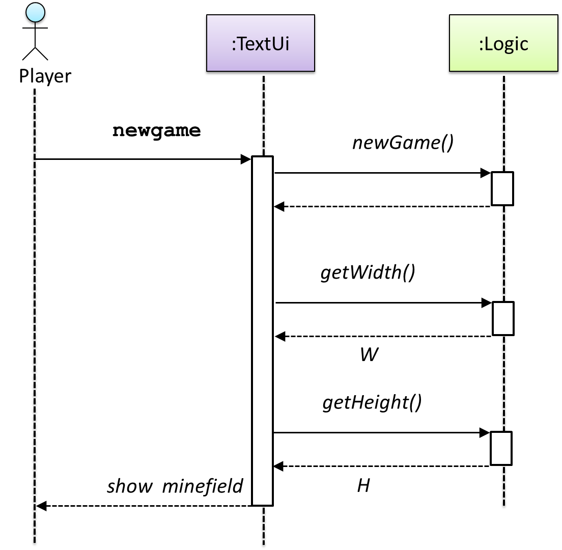 The above diagram assumes that W and H are the only information TextUi requires to display the minefield to the Player. Note that there could be other ways of doing this.