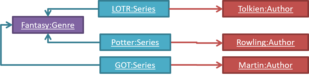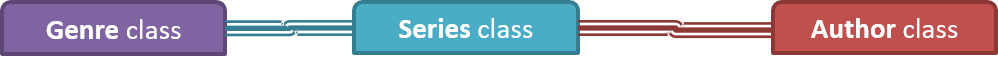 Here is a class structure (drawn using an ad-hoc notation) that matches the object structures given in the previous two examples. For example, note how this class structure does not allow any connection between Genre objects and Author objects, a rule followed by the two object structures above.