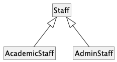 In the example above, AcademicStaff is a SalariedStaff. An AcademicStaff object can be used anywhere a SalariedStaff object is expected e.g., SalariedStaff ss = new AcademicStaff().